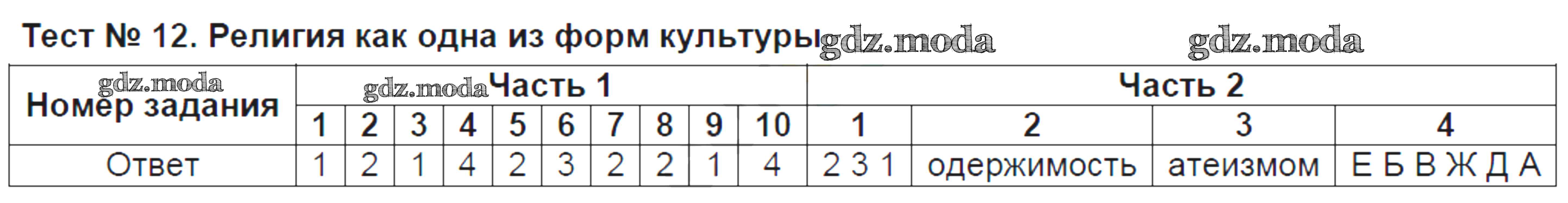 ОТВЕТ на задание № Тест №12. Религия как одна из форм культуры Тесты по Обществознанию 8 класс Краюшкина УМК