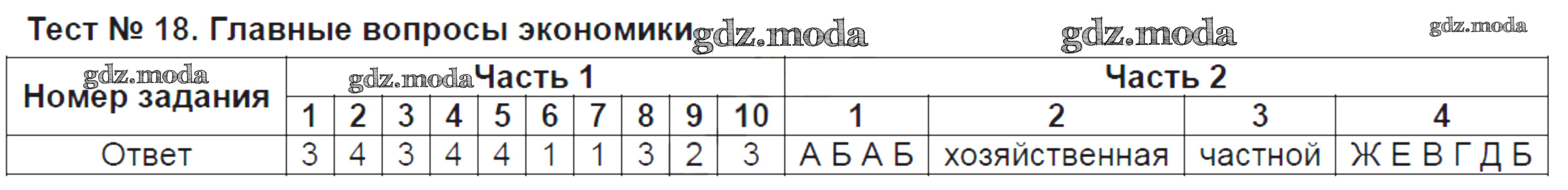 ГДЗ решение к заданию № Тест №18. Главные вопросы экономики Обществознание 8 класс тесты Краюшкина С.В. (к уч. Боголюбова) Экзамен 2017 ФГОС бесплатно на гдз.мода!