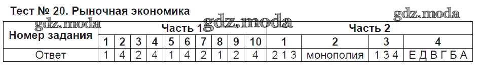 ГДЗ решение к заданию № Тест №20. Рыночная экономика Обществознание 8 класс тесты Краюшкина С.В. (к уч. Боголюбова) Экзамен 2017 ФГОС бесплатно на гдз.мода!