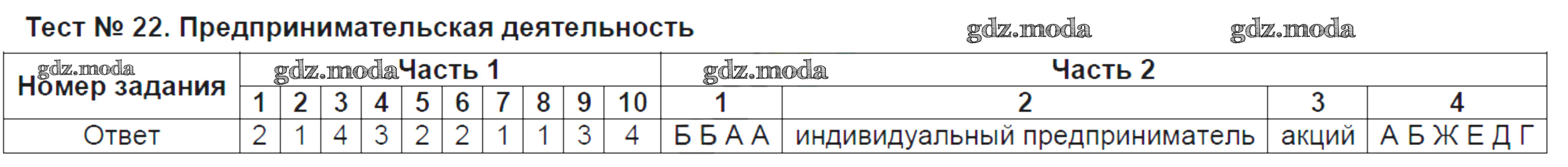 ГДЗ решение к заданию № Тест №22. Предпринимательская деятельность Обществознание 8 класс тесты Краюшкина С.В. (к уч. Боголюбова) Экзамен 2017 ФГОС бесплатно на гдз.мода!