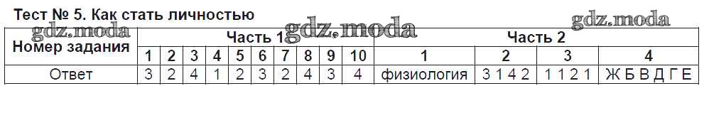 ГДЗ решение к заданию № Тест №5. Как стать личностью Обществознание 8 класс тесты Краюшкина С.В. (к уч. Боголюбова) Экзамен 2017 ФГОС бесплатно на гдз.мода!