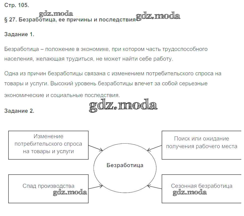 ГДЗ решение к заданию № 105 Обществознание 8 класс рабочая тетрадь Митькин А.С. (к уч. Боголюбова) Экзамен 2017 ФГОС бесплатно на гдз.мода!