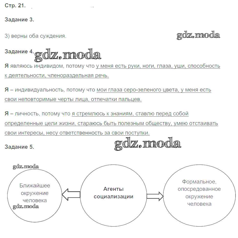 ГДЗ решение к заданию № 21 Обществознание 8 класс рабочая тетрадь Митькин А.С. (к уч. Боголюбова) Экзамен 2017 ФГОС бесплатно на гдз.мода!