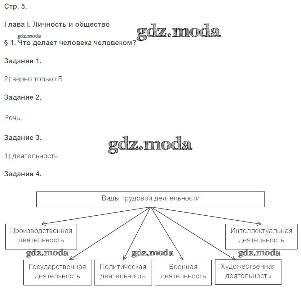 ГДЗ решение к заданию № 5 Обществознание 8 класс рабочая тетрадь Митькин А.С. (к уч. Боголюбова) Экзамен 2017 ФГОС бесплатно на гдз.мода!