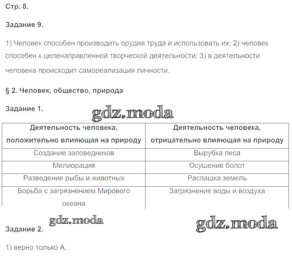 ГДЗ решение к заданию № 8 Обществознание 8 класс рабочая тетрадь Митькин А.С. (к уч. Боголюбова) Экзамен 2017 ФГОС бесплатно на гдз.мода!