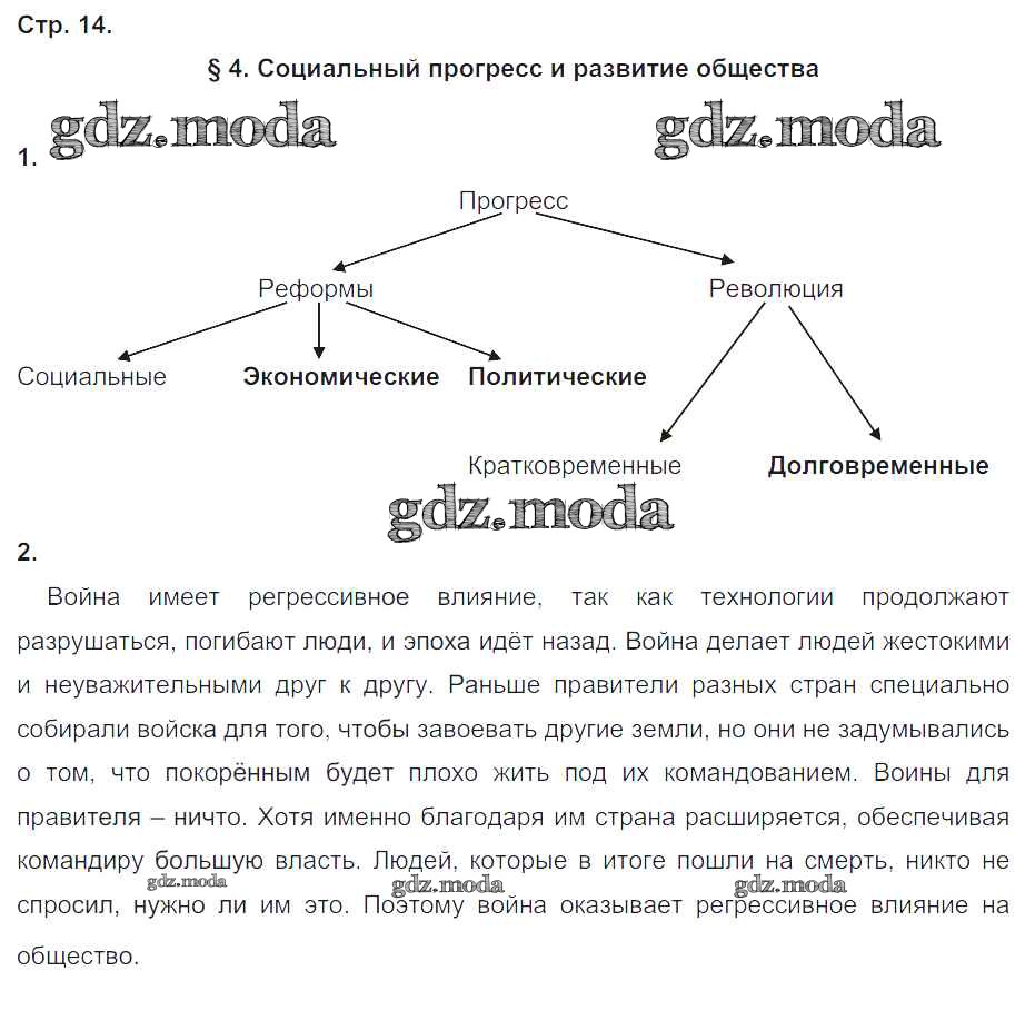 ГДЗ решение к заданию № 14 Обществознание 8 класс рабочая тетрадь Хромова И.С. (к уч. Кравченко) Русское слово 2015 ФГОС бесплатно на гдз.мода!