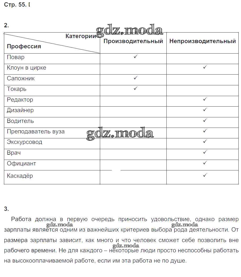 ГДЗ решение к заданию № 55 Обществознание 8 класс рабочая тетрадь Хромова И.С. (к уч. Кравченко) Русское слово 2015 ФГОС бесплатно на гдз.мода!