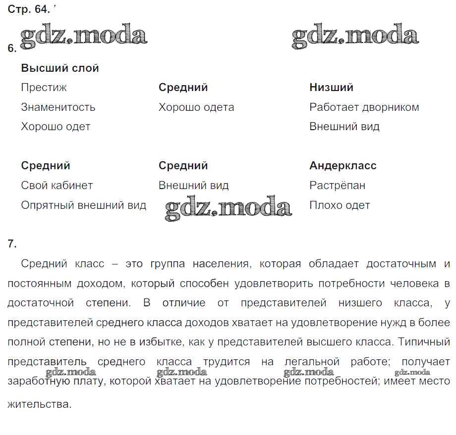 ГДЗ решение к заданию № 64 Обществознание 8 класс рабочая тетрадь Хромова И.С. (к уч. Кравченко) Русское слово 2015 ФГОС бесплатно на гдз.мода!