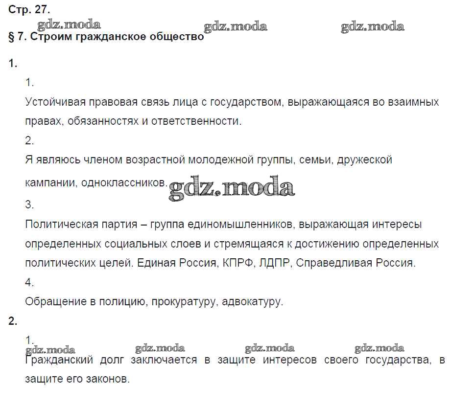 ГДЗ решение к заданию № 27 Обществознание 8 класс рабочая тетрадь Соболева О.Б. Вентана-граф 2018 ФГОС бесплатно на гдз.мода!