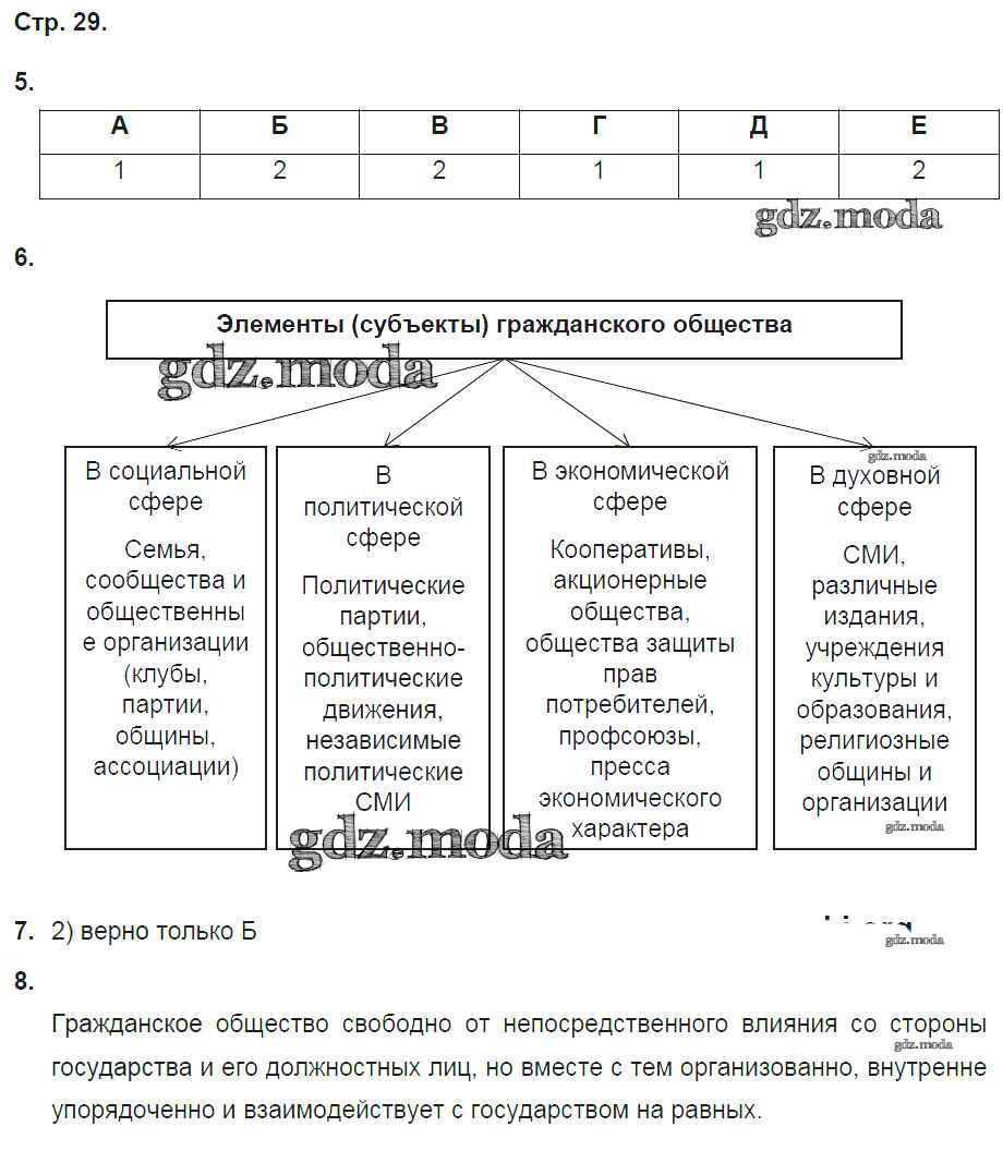 ГДЗ решение к заданию № 29 Обществознание 8 класс рабочая тетрадь Соболева О.Б. Вентана-граф 2018 ФГОС бесплатно на гдз.мода!