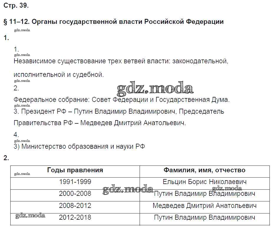 ГДЗ решение к заданию № 39 Обществознание 8 класс рабочая тетрадь Соболева О.Б. Вентана-граф 2018 ФГОС бесплатно на гдз.мода!