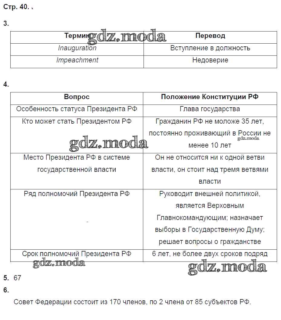 ГДЗ решение к заданию № 40 Обществознание 8 класс рабочая тетрадь Соболева О.Б. Вентана-граф 2018 ФГОС бесплатно на гдз.мода!