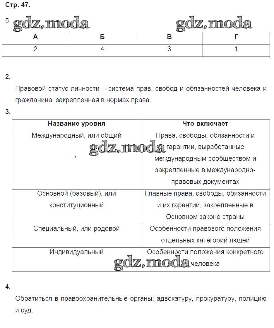 ГДЗ решение к заданию № 47 Обществознание 8 класс рабочая тетрадь Соболева О.Б. Вентана-граф 2018 ФГОС бесплатно на гдз.мода!