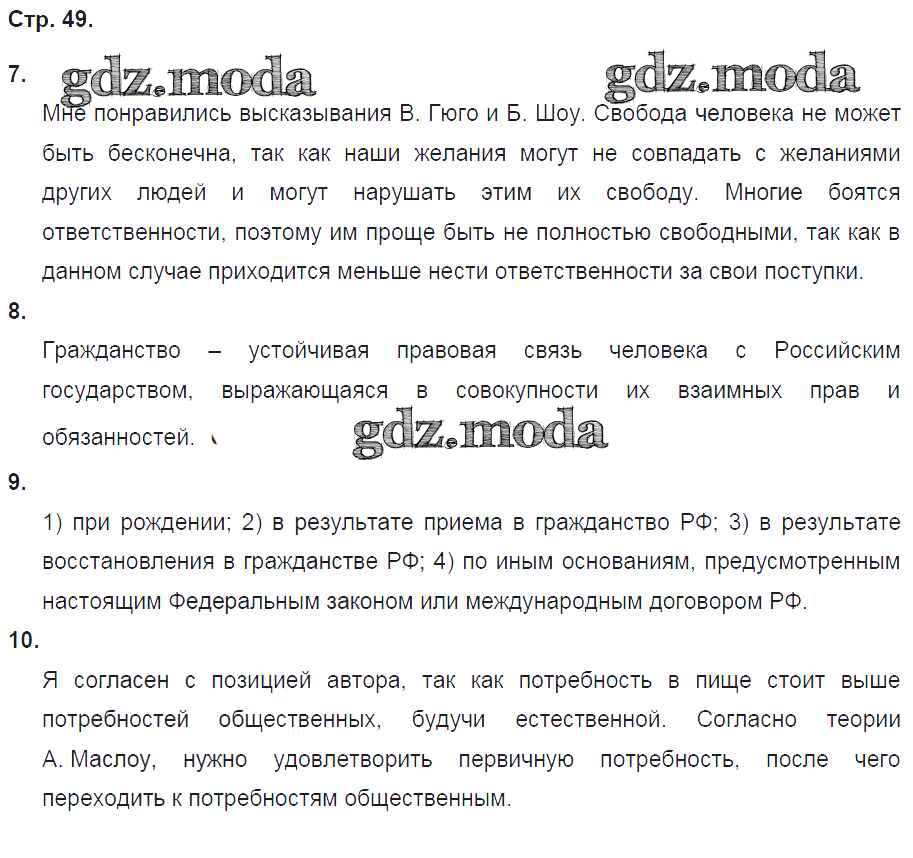 ГДЗ решение к заданию № 49 Обществознание 8 класс рабочая тетрадь Соболева О.Б. Вентана-граф 2018 ФГОС бесплатно на гдз.мода!
