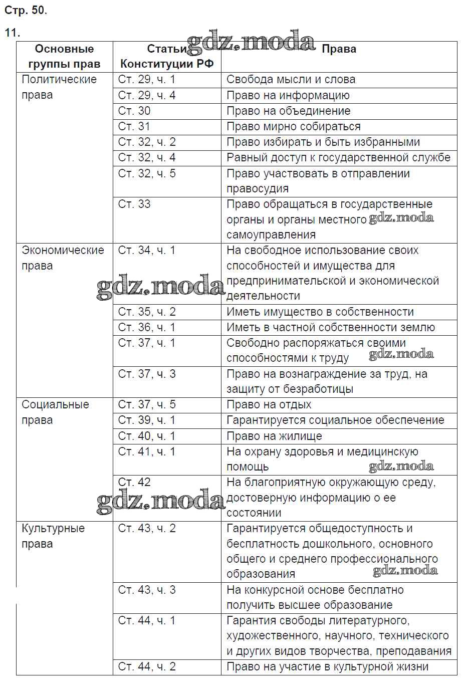ГДЗ решение к заданию № 50 Обществознание 8 класс рабочая тетрадь Соболева О.Б. Вентана-граф 2018 ФГОС бесплатно на гдз.мода!