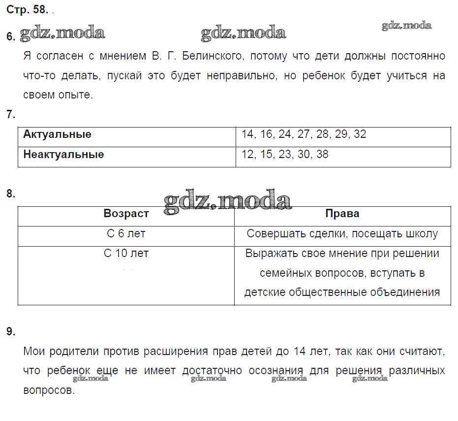 ГДЗ решение к заданию № 58 Обществознание 8 класс рабочая тетрадь Соболева О.Б. Вентана-граф 2018 ФГОС бесплатно на гдз.мода!