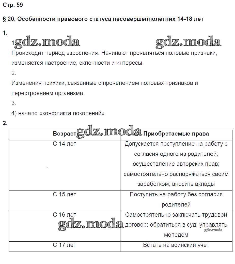 ГДЗ решение к заданию № 59 Обществознание 8 класс рабочая тетрадь Соболева О.Б. Вентана-граф 2018 ФГОС бесплатно на гдз.мода!
