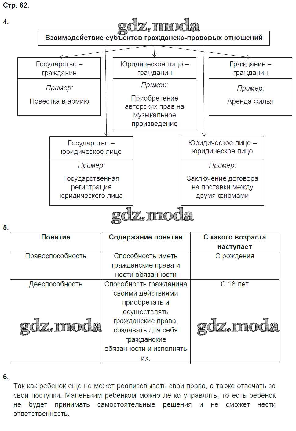 ГДЗ решение к заданию № 62 Обществознание 8 класс рабочая тетрадь Соболева О.Б. Вентана-граф 2018 ФГОС бесплатно на гдз.мода!
