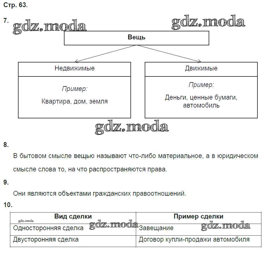 ГДЗ решение к заданию № 63 Обществознание 8 класс рабочая тетрадь Соболева О.Б. Вентана-граф 2018 ФГОС бесплатно на гдз.мода!