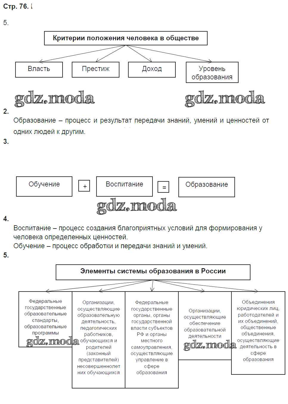 ГДЗ решение к заданию № 76 Обществознание 8 класс рабочая тетрадь Соболева О.Б. Вентана-граф 2018 ФГОС бесплатно на гдз.мода!