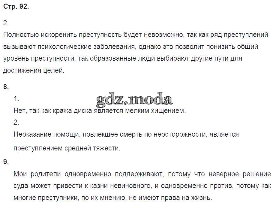 ГДЗ решение к заданию № 92 Обществознание 8 класс рабочая тетрадь Соболева О.Б. Вентана-граф 2018 ФГОС бесплатно на гдз.мода!