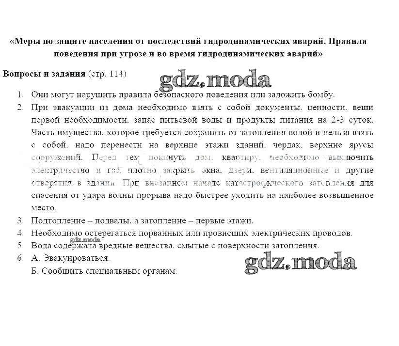 ГДЗ решение к заданию № 114 ОБЖ 8 класс Фролов М.П. Дрофа 2019 ФГОС бесплатно на гдз.мода!