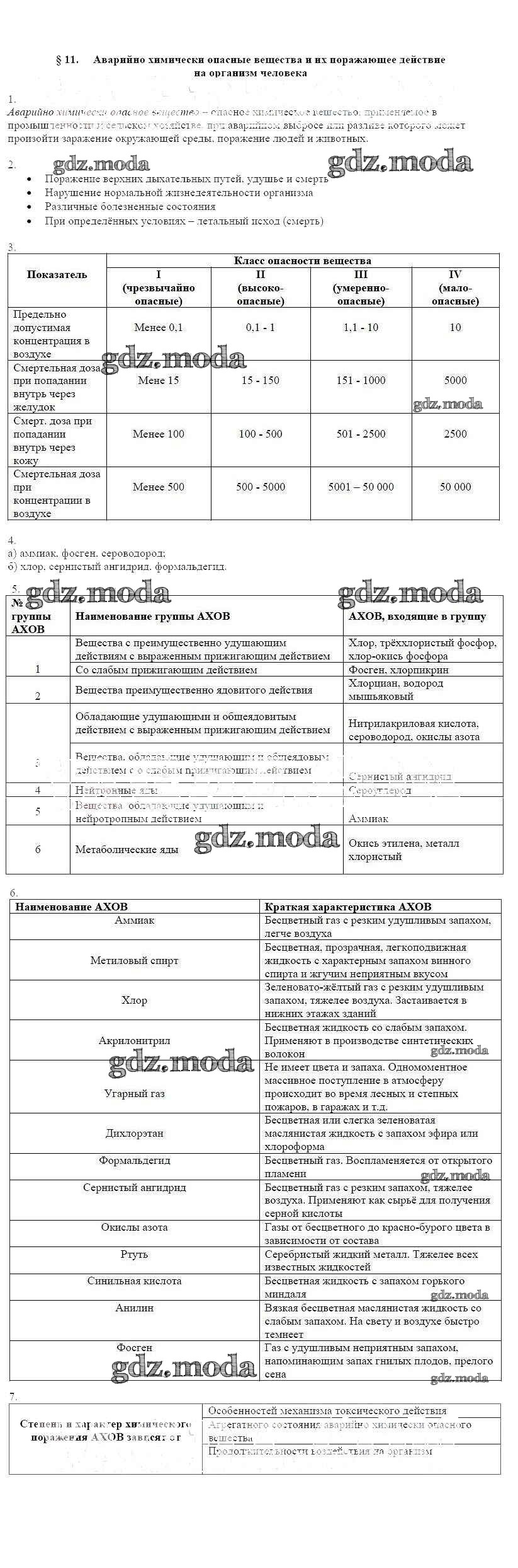 ГДЗ решение к заданию № §11 ОБЖ 8 класс рабочая тетрадь Латчук В.Н. Дрофа 2018 бесплатно на гдз.мода!