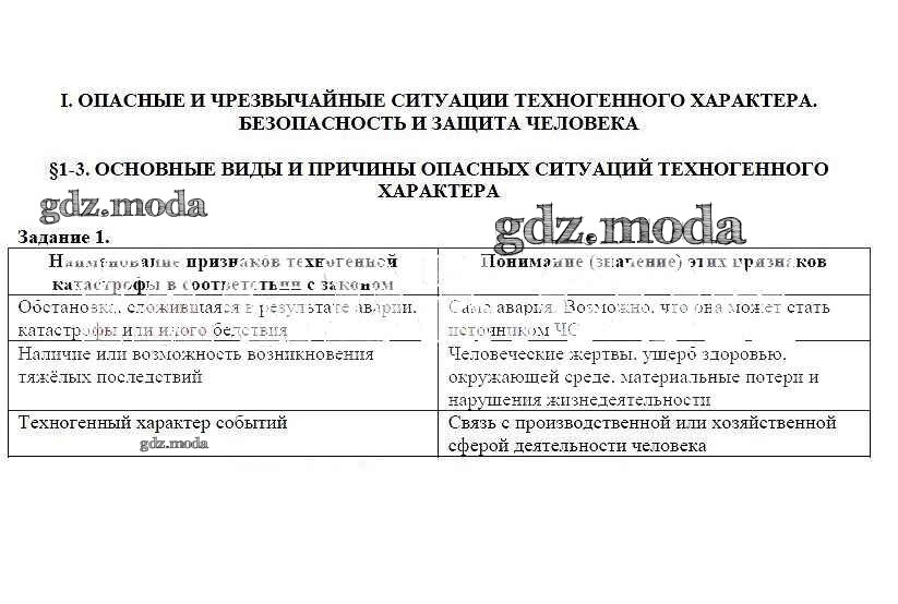 ОТВЕТ на задание № 1 Рабочая тетрадь по ОБЖ 8 класс Подолян