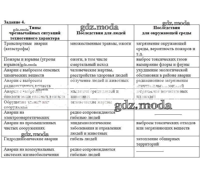 ОТВЕТ на задание № 4 Рабочая тетрадь по ОБЖ 8 класс Подолян