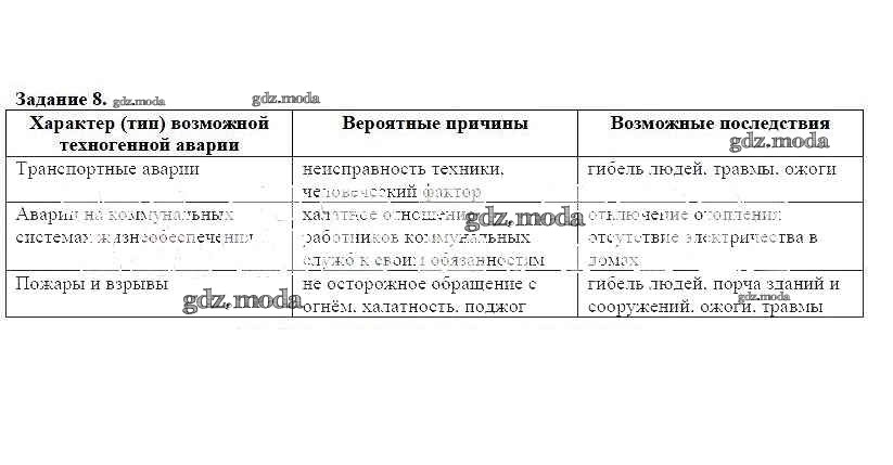 ОТВЕТ на задание № 8 Рабочая тетрадь по ОБЖ 8 класс Подолян