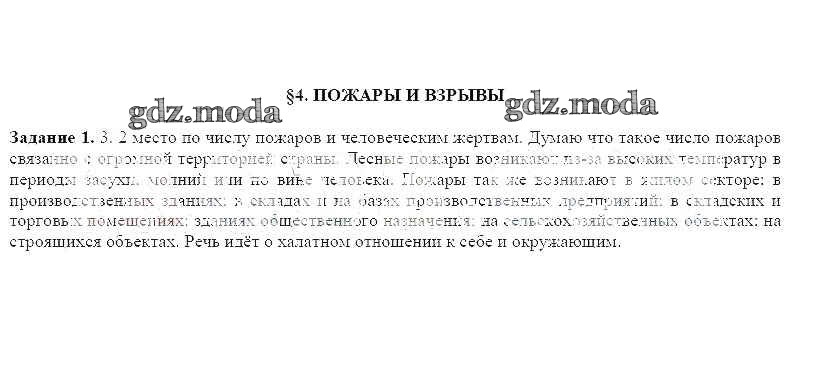 ОТВЕТ на задание № 1 Рабочая тетрадь по ОБЖ 8 класс Подолян