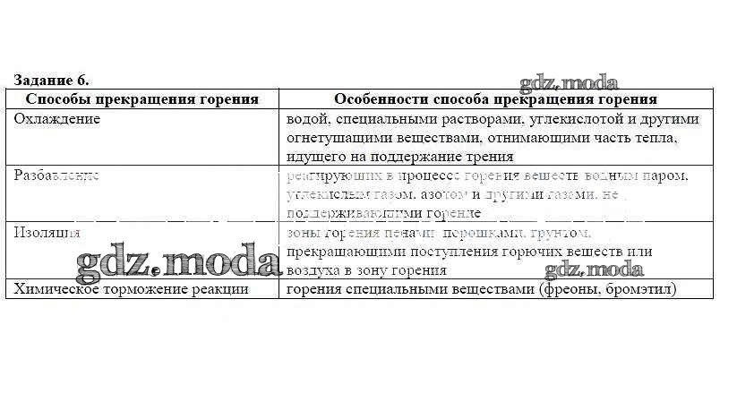 ОТВЕТ на задание № 6 Рабочая тетрадь по ОБЖ 8 класс Подолян