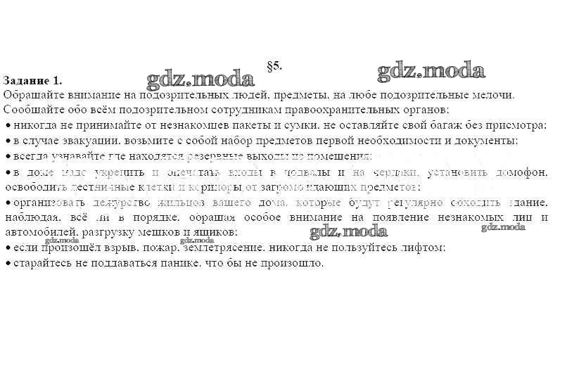 ОТВЕТ на задание № 1 Рабочая тетрадь по ОБЖ 8 класс Подолян