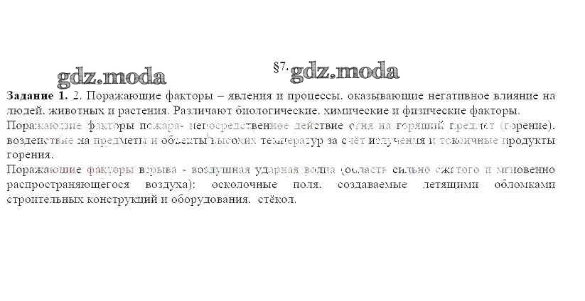 ОТВЕТ на задание № 1 Рабочая тетрадь по ОБЖ 8 класс Подолян