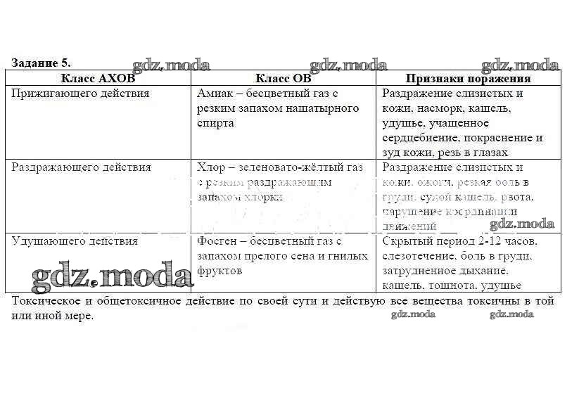 ОТВЕТ на задание № 5 Рабочая тетрадь по ОБЖ 8 класс Подолян