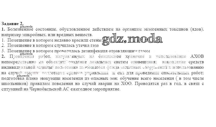 ОТВЕТ на задание № 2 Рабочая тетрадь по ОБЖ 8 класс Подолян