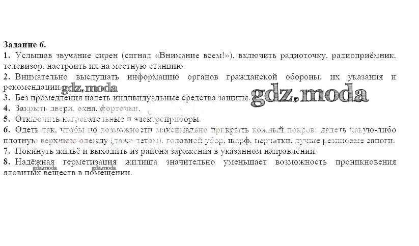 ГДЗ решение к заданию № 6 ОБЖ 8 класс рабочая тетрадь Подолян Ю.П. Дрофа 2017 ФГОС бесплатно на гдз.мода!