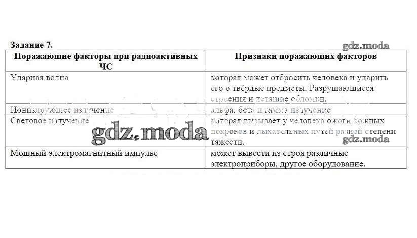 ОТВЕТ на задание № 7 Рабочая тетрадь по ОБЖ 8 класс Подолян