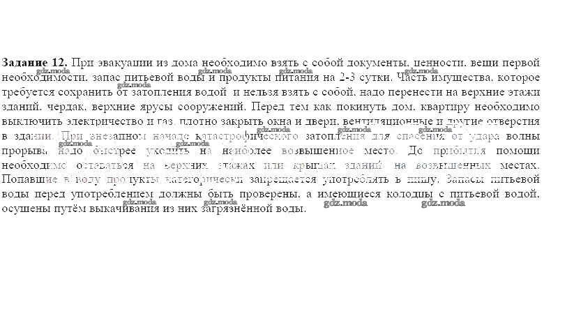ГДЗ решение к заданию № 12 ОБЖ 8 класс рабочая тетрадь Подолян Ю.П. Дрофа 2017 ФГОС бесплатно на гдз.мода!