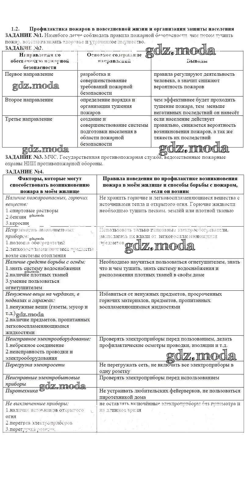 ОТВЕТ на задание № 1.2 Рабочая тетрадь по ОБЖ 8 класс Смирнов
