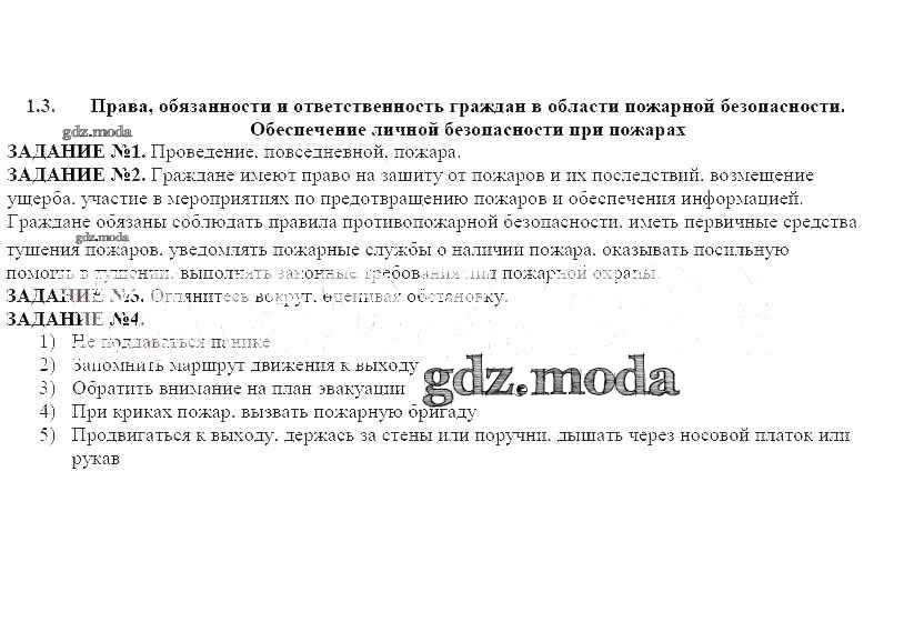 ОТВЕТ на задание № 1.3 Рабочая тетрадь по ОБЖ 8 класс Смирнов