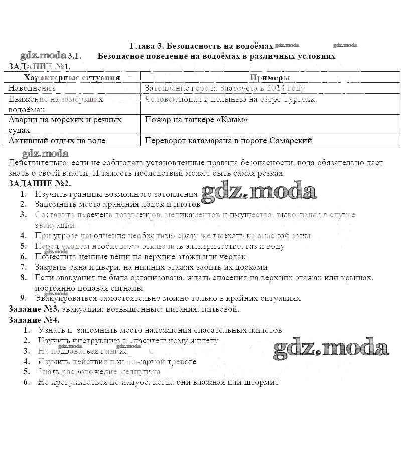 ОТВЕТ на задание № 3.1 Рабочая тетрадь по ОБЖ 8 класс Смирнов