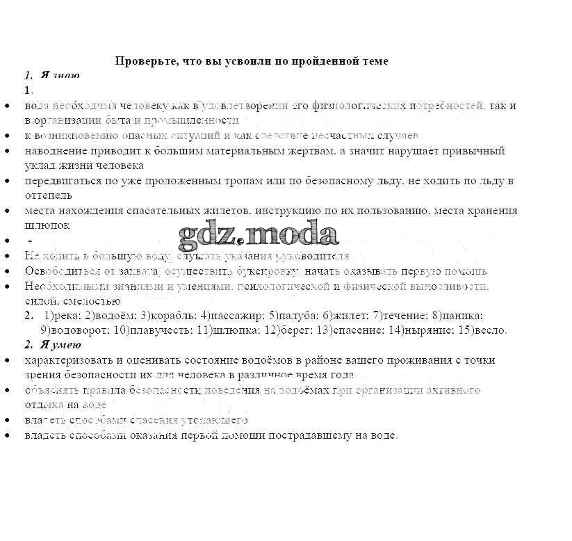 ОТВЕТ на задание № Проверьте свои знания Рабочая тетрадь по ОБЖ 8 класс Смирнов