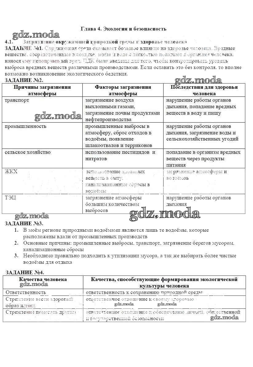 ОТВЕТ на задание № 4.1 Рабочая тетрадь по ОБЖ 8 класс Смирнов