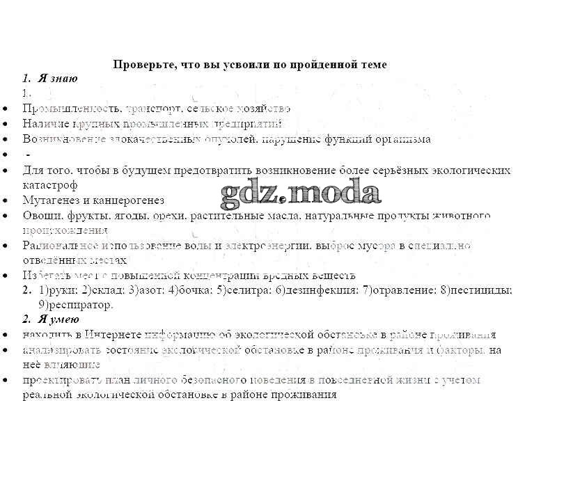 ОТВЕТ на задание № Проверьте свои знания Рабочая тетрадь по ОБЖ 8 класс Смирнов