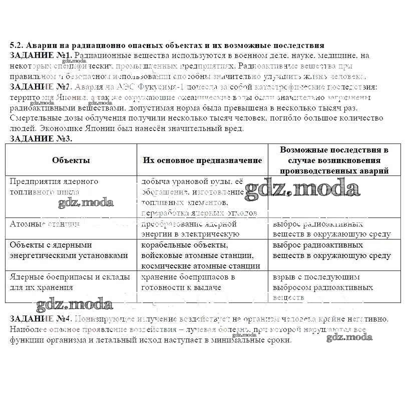 ОТВЕТ на задание № 5.2 Рабочая тетрадь по ОБЖ 8 класс Смирнов