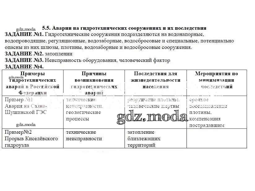 ОТВЕТ на задание № 5.5 Рабочая тетрадь по ОБЖ 8 класс Смирнов