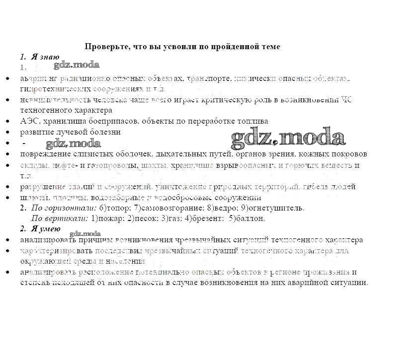 ГДЗ решение к заданию № Проверьте свои знания ОБЖ 8 класс рабочая тетрадь Смирнов А.Т. Просвещение 2013 ФГОС бесплатно на гдз.мода!