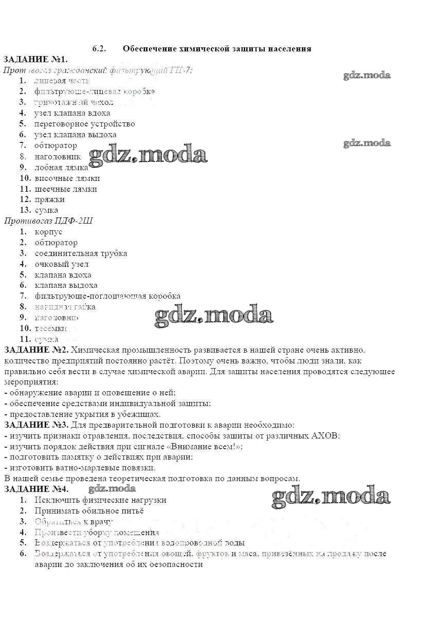 ОТВЕТ на задание № 6.2 Рабочая тетрадь по ОБЖ 8 класс Смирнов