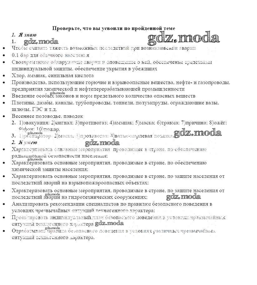 ГДЗ решение к заданию № Проверьте свои знания ОБЖ 8 класс рабочая тетрадь Смирнов А.Т. Просвещение 2013 ФГОС бесплатно на гдз.мода!